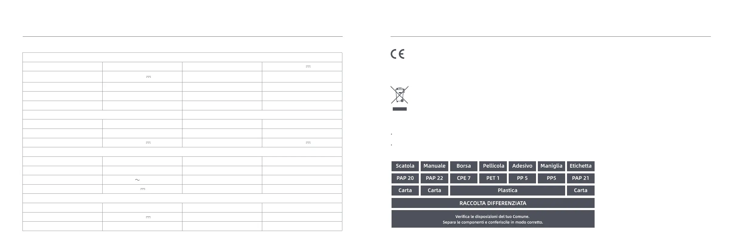 Potenza in ingresso 100-240 V 50/60 Hz 0,8 A Consumo di energia a vuoto 0,10 W