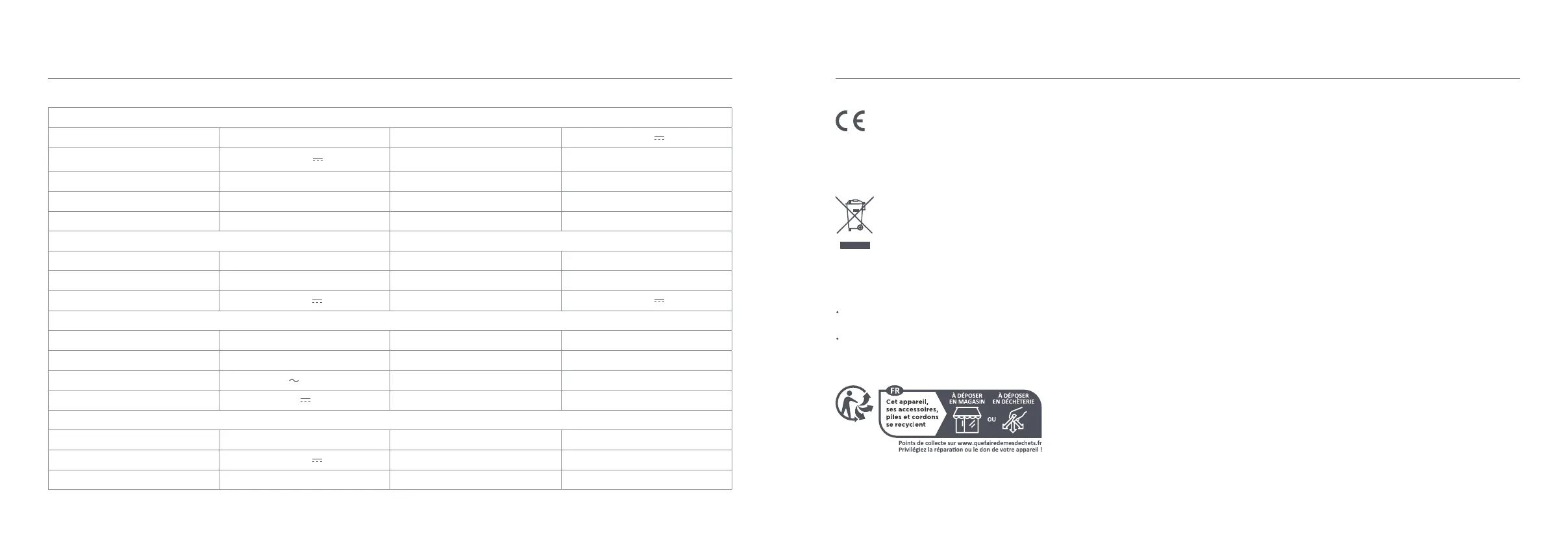 Entrée 100-240 V 50/60 Hz 0,8 A Consommation d’énergie sans charge 0,10 W