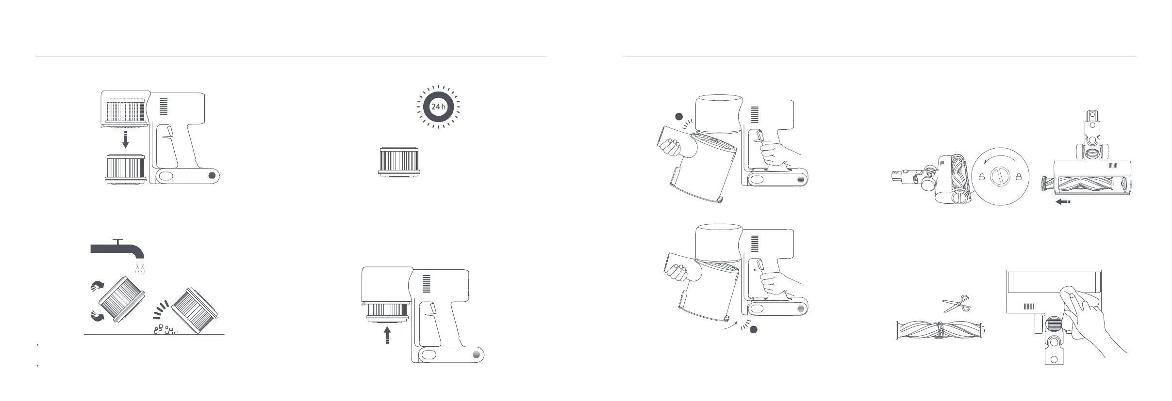 den Filter um 360° drehen, um den gesamten im Filter aufgefangenen Staub
