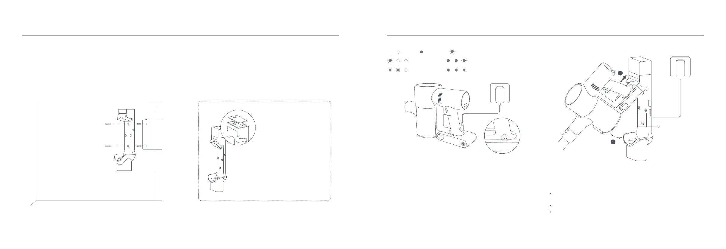 4. Align the mounting holes on the 2-in-1 charging & storage mount to the holes on the wall, then attach the mount to the wall using the included screws.