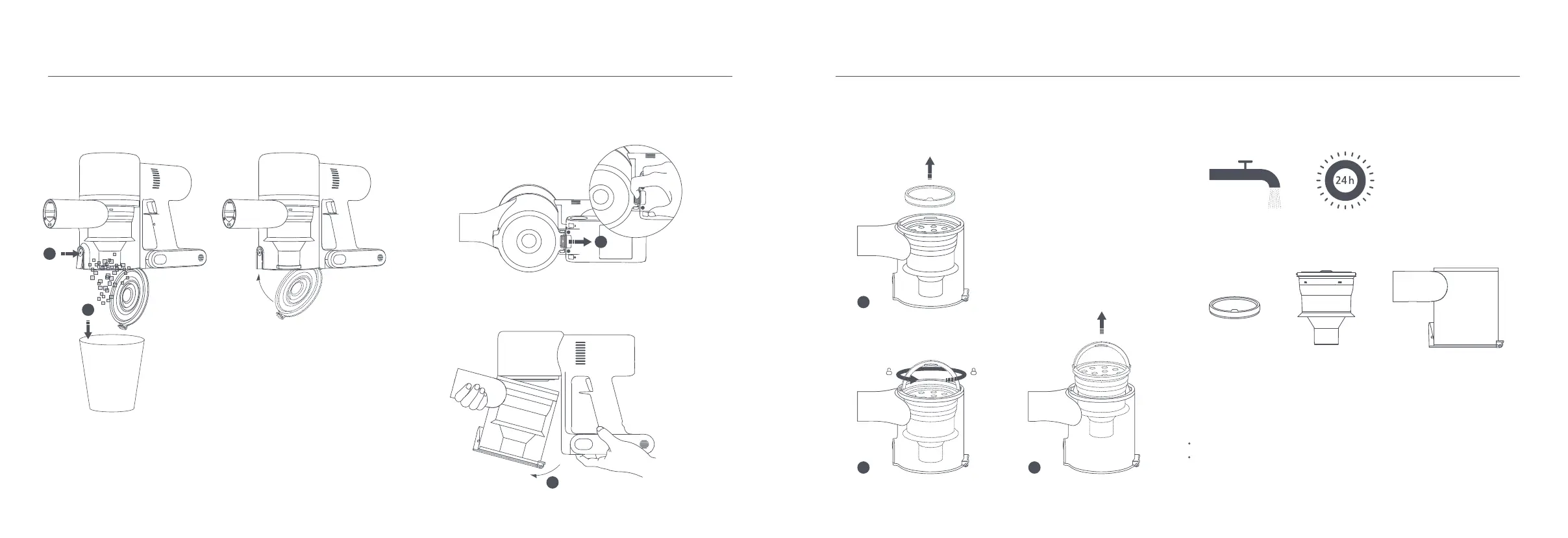 4. Quite primero el prefiltro, luego levante el mango del ciclón y gire en sentido