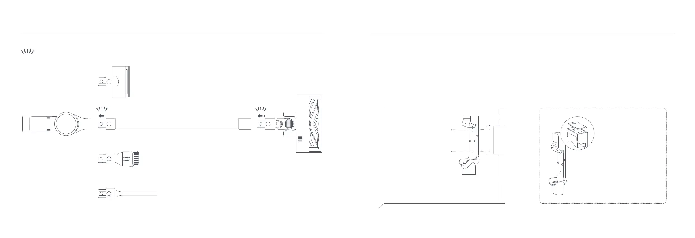 1. Крепление для зарядки и хранения "2 в 1" следует устанавливать в прохладном и сухом месте рядом с электрической розеткой. Перед монтажом