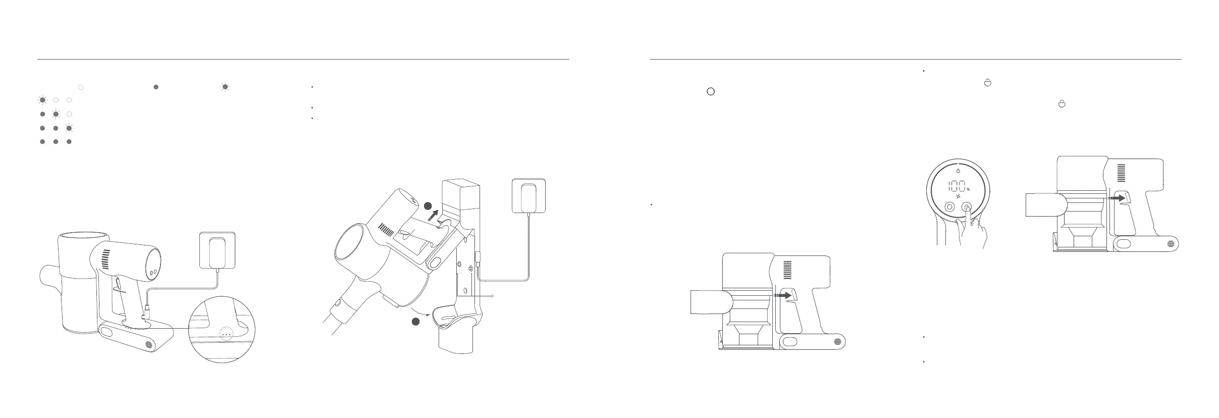 Во время зарядки пылесоса, вы можете нажать кнопку питания, чтобы