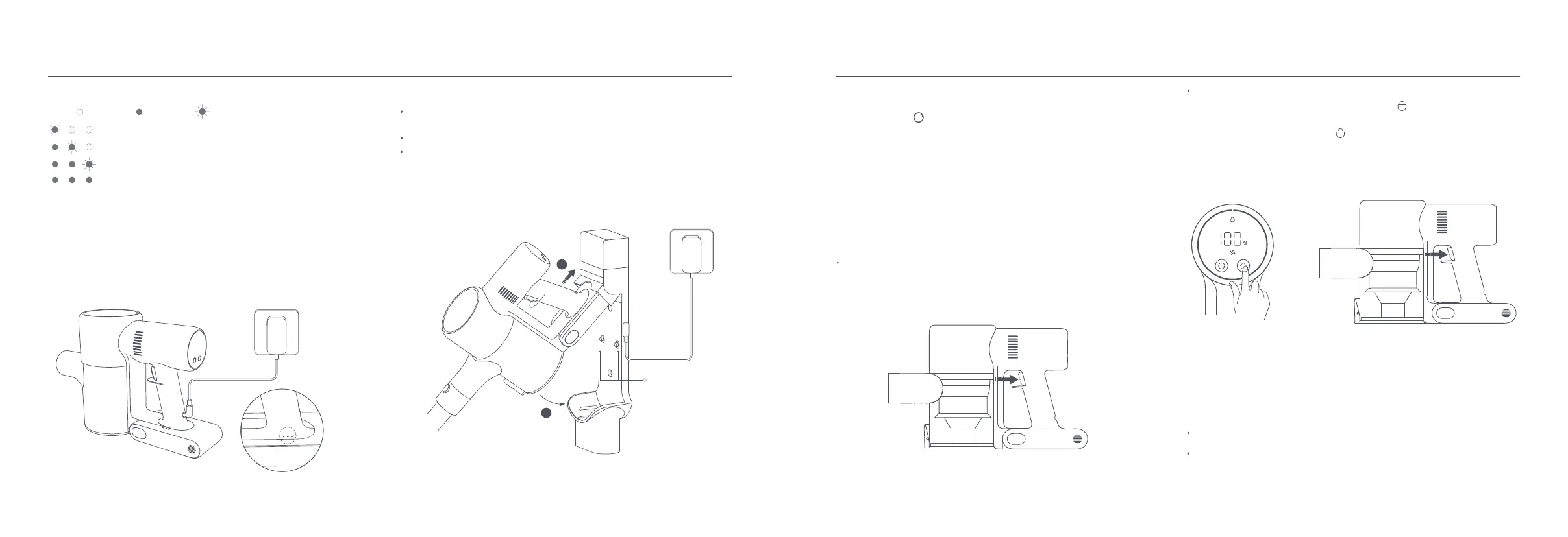Podczas ładowania odkurzacza można nacisnąć przycisk zasilania, aby