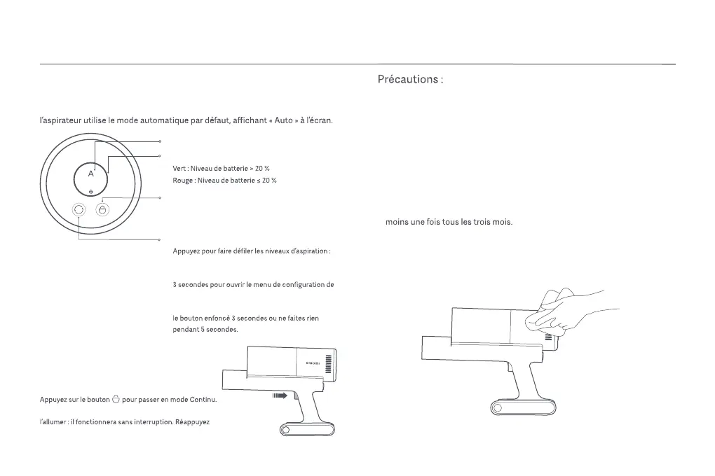 • Afin d’éviter une décharge excessive de la baerie, rechargez l’aspirateur au