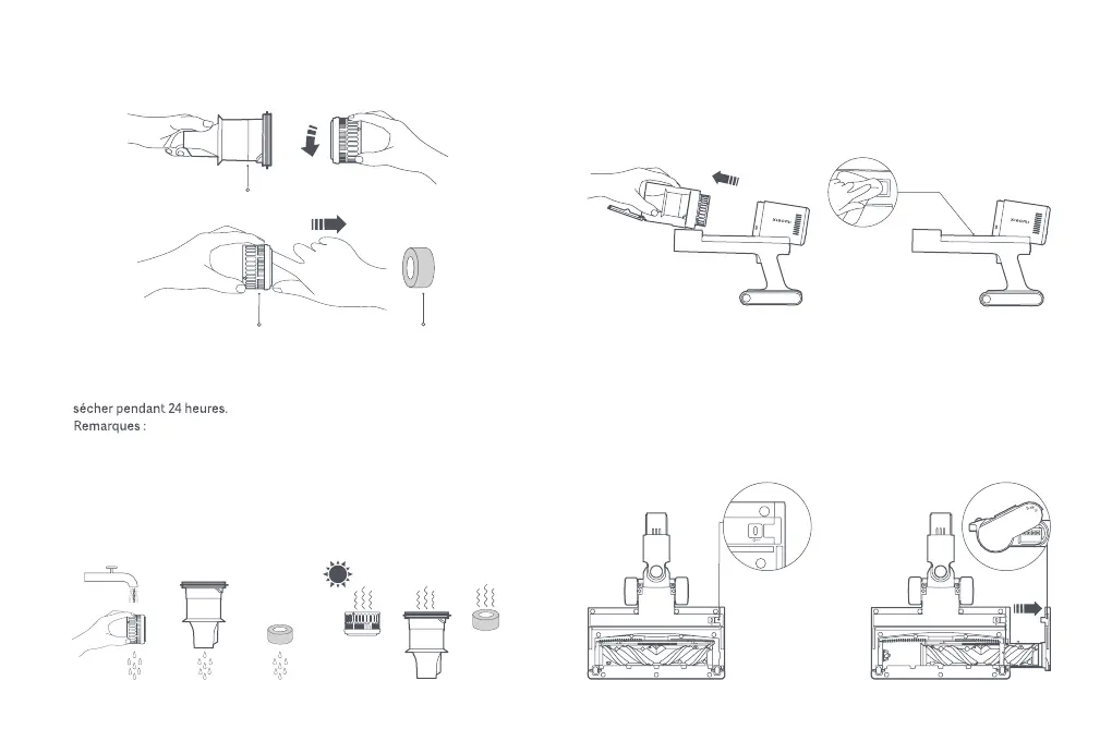 • Si la puissance d’aspiration est encore faible une fois le filtre neoyé, vous pouvez