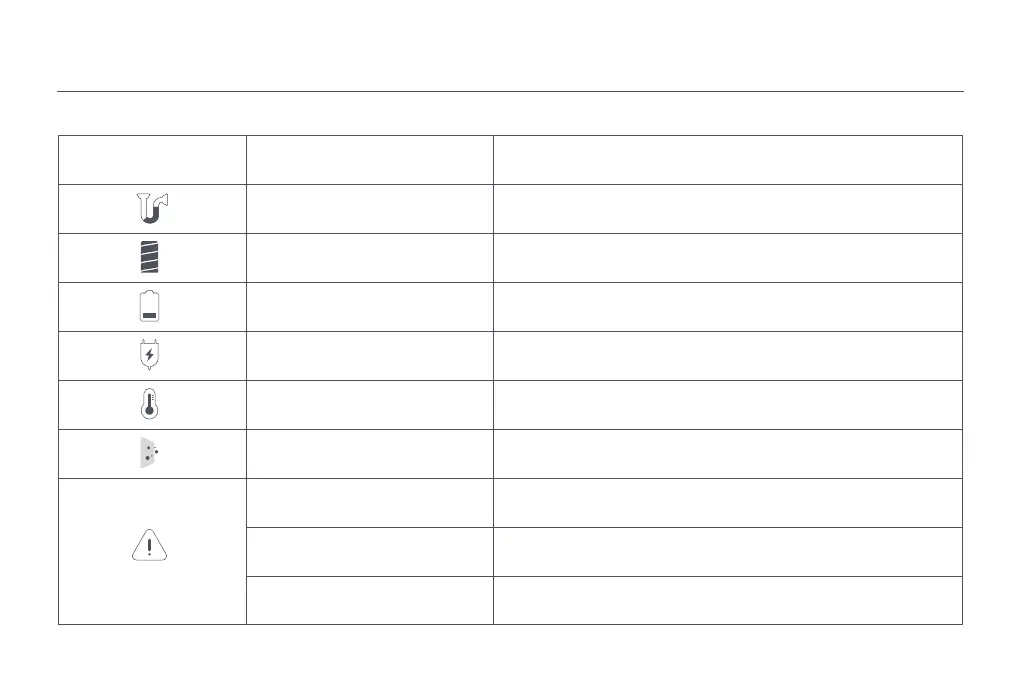 Si la aspiradora no funciona con normalidad, en la pantalla aparecerá un mensaje de error. Consulte la tabla siguiente para encontrar la solución al problema en función