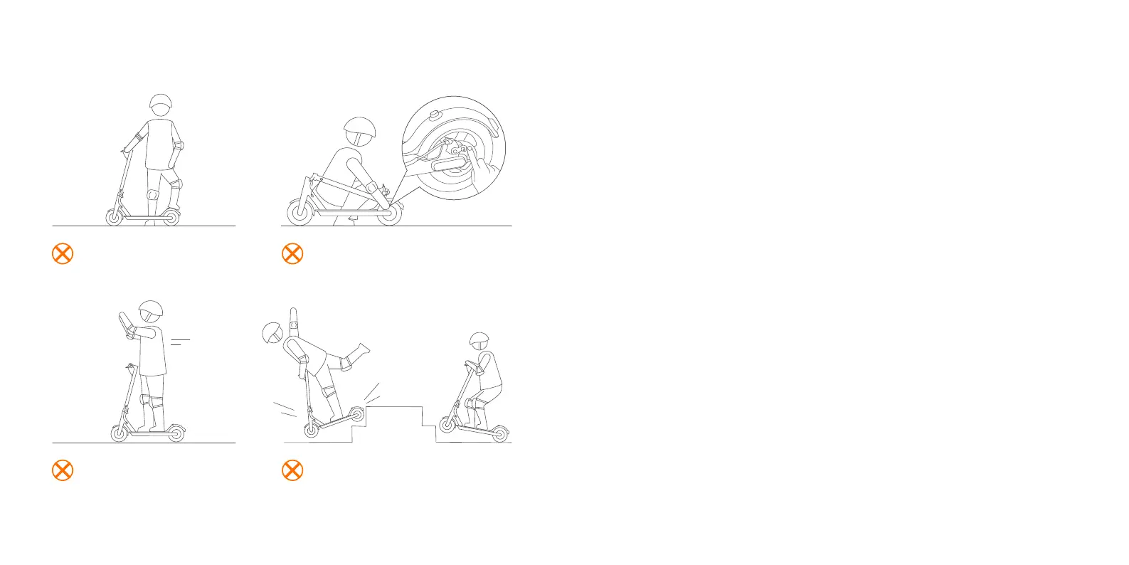 lose balance, and even result in a fall. Be cautious when riding, don't speed and keep a safe distance from