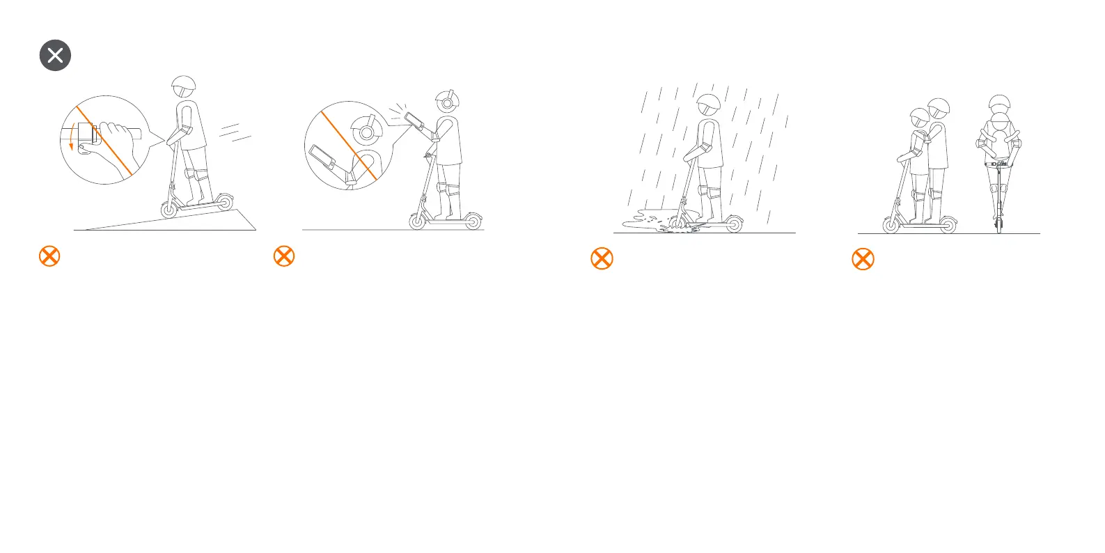 Nie używać hulajnogi w deszczu. Nie przejeżdżać przez