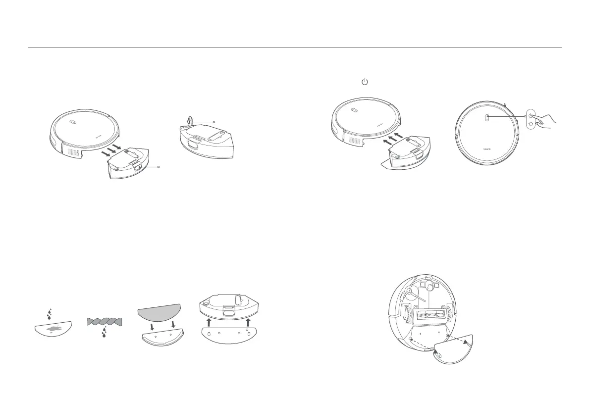 ulang penutup. Pasang kompartemen debu dan tangki air 2-in-1 ke robot
