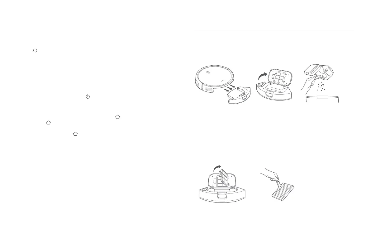 pengisi daya, tekan tombol untuk mengirim robot vakum kembali ke dok