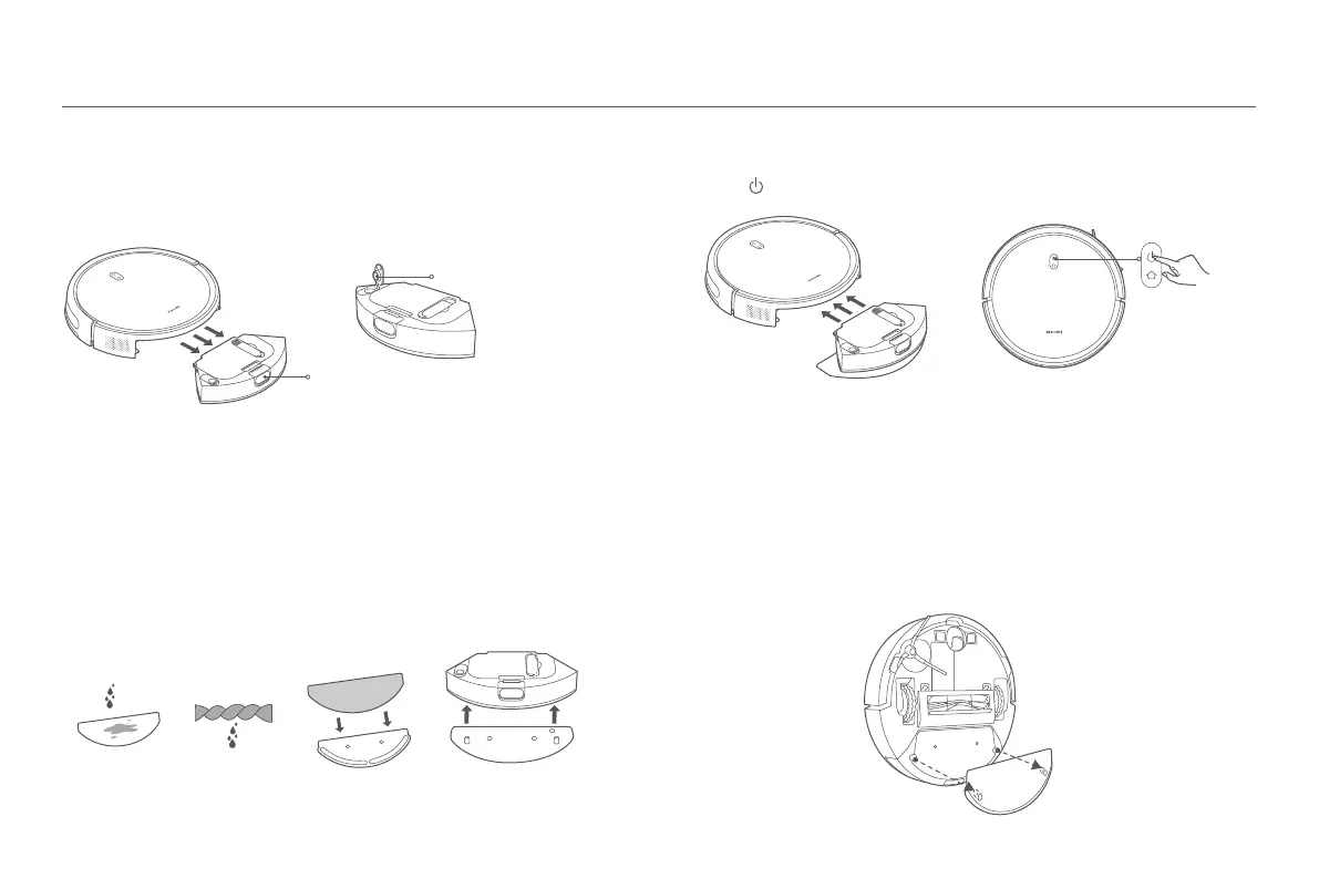 2.Før bruk av støvsuge- og vaskefunksjonen, fukt moppen, vri den opp og fest