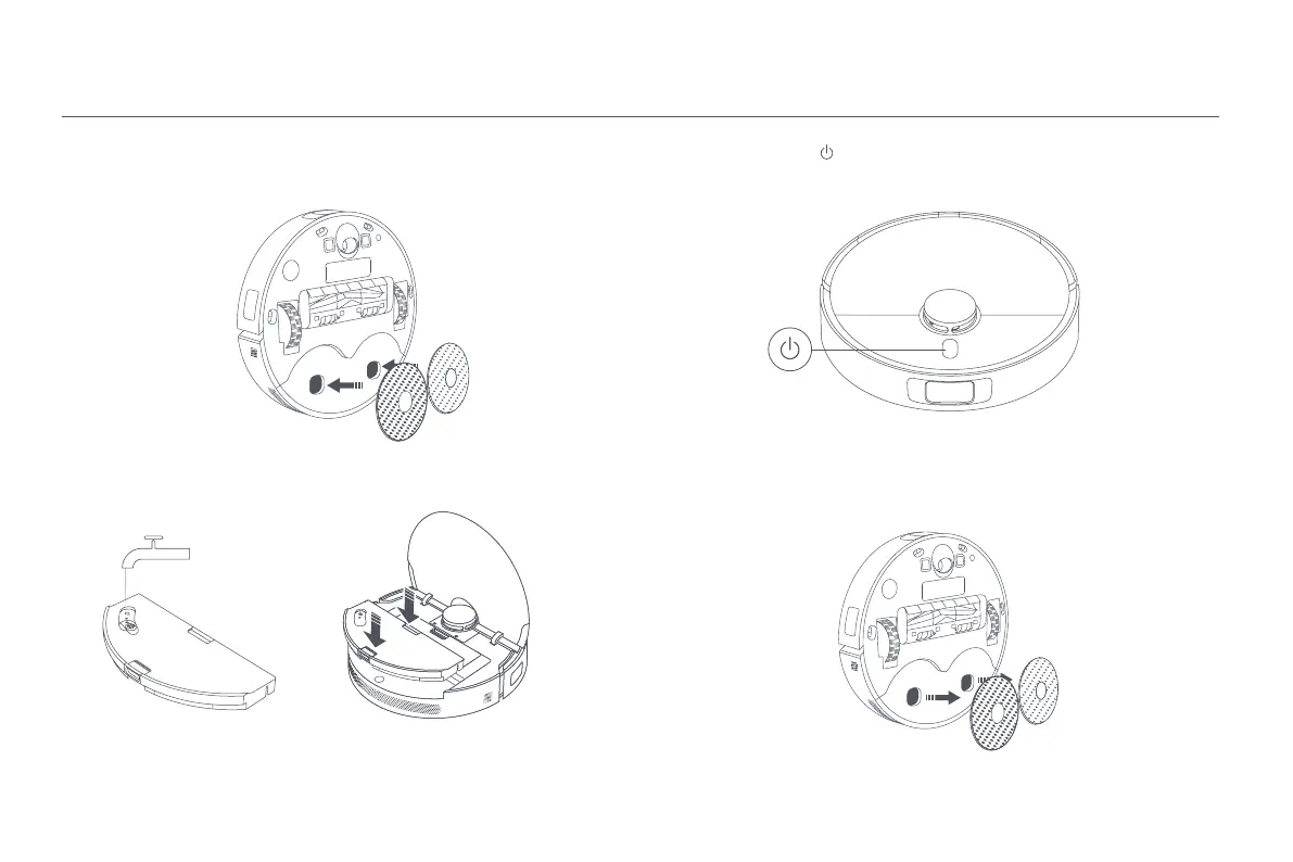1. Installieren Sie die Wischer-Baugruppe an der Unterseite des Roboterstaubsaugers.
