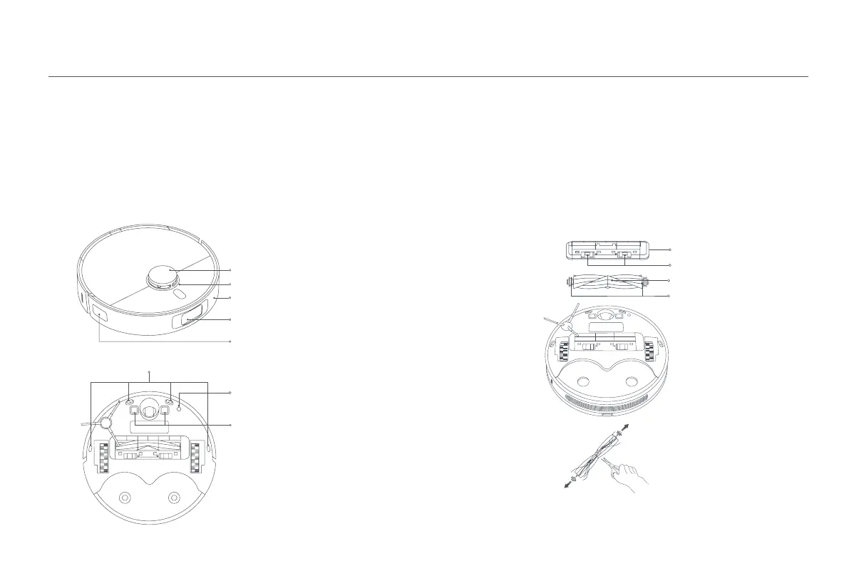1. Temizlik robotunu ters çevirin ve fırça kapağını çıkarmak için kancaları sıkıştırın.
