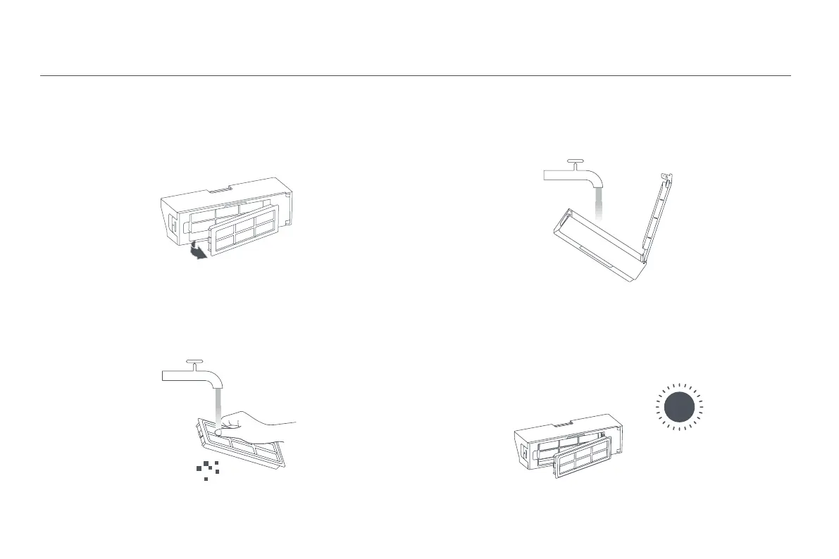 ATENȚIE: Utilizați doar apă curată pentru a curăța filtrul. Nu utilizați detergent.