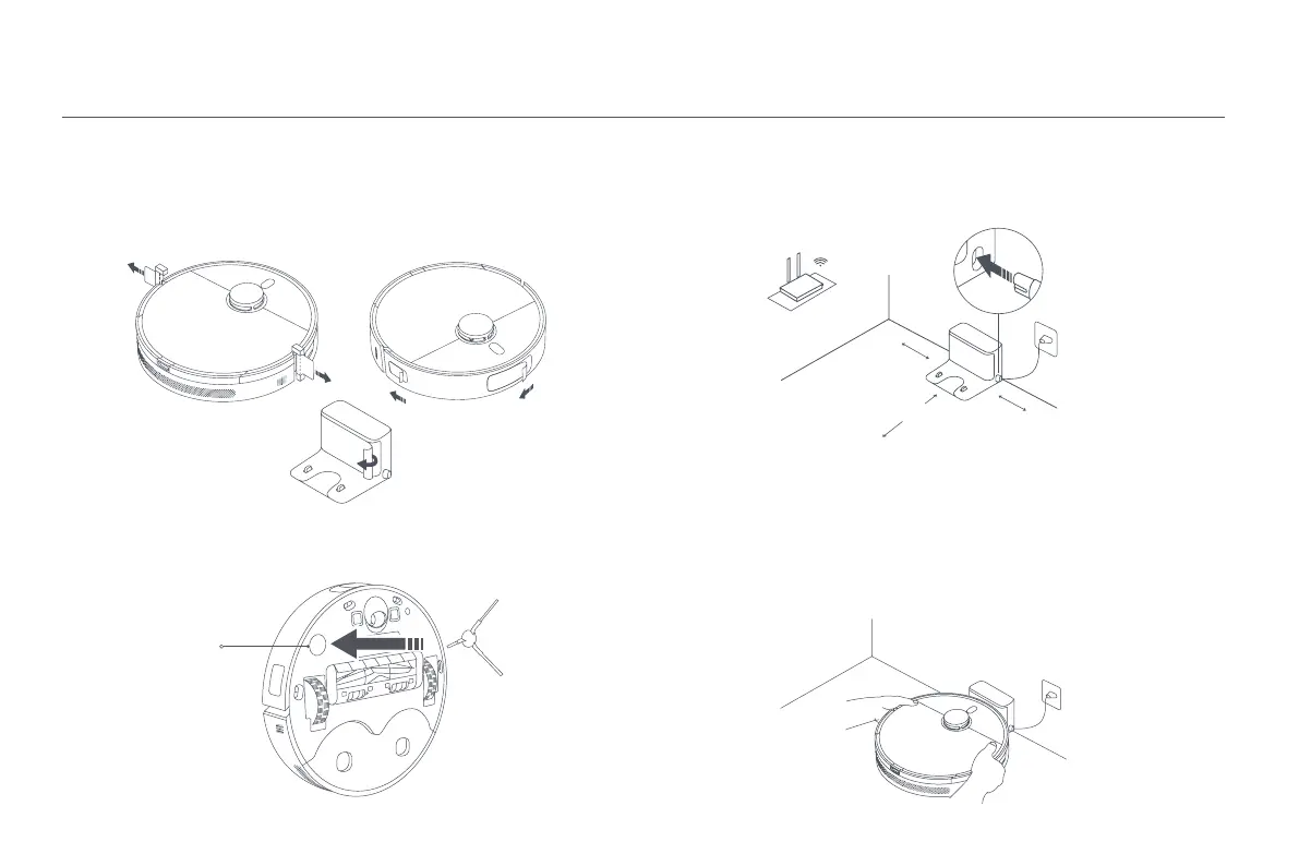 Installeer de zijborstel op de klem aan de onderkant van de robotstofzuiger.