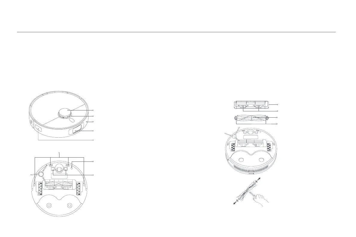 1. Dele la vuelta al robot aspirador y pulse los clips para quitar la cubierta del cepillo.