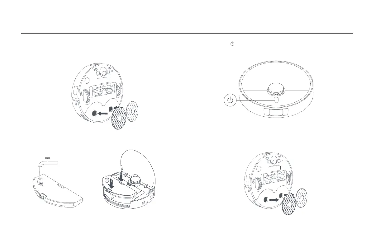 1. Установите блок влажной уборки в нижней части робота-пылесоса.