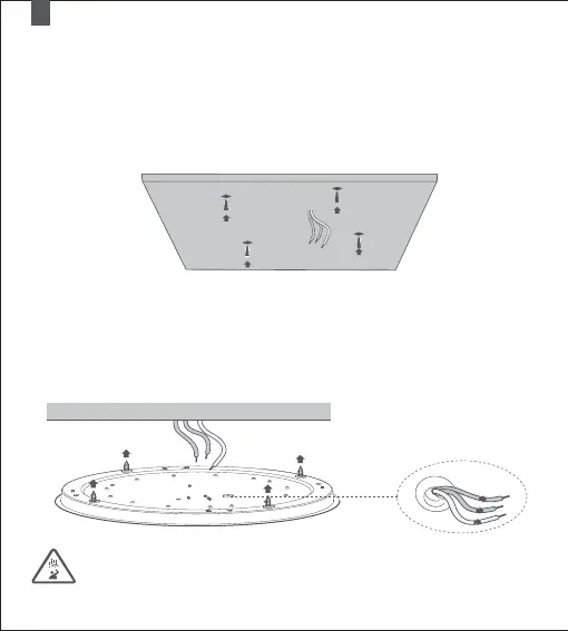 將 4 顆自攻螺絲從安裝孔中轉入膨脹套管內,把底座固定在天花板上,並確認底座安裝