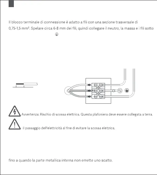 tensione in base ai segni (N, , e L) al blocco terminale di connessione sulla plafoniera.