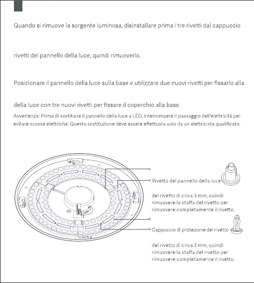 luce e scollegare il cablaggio collegato al pannello della luce. Infine, disinstallare i due
