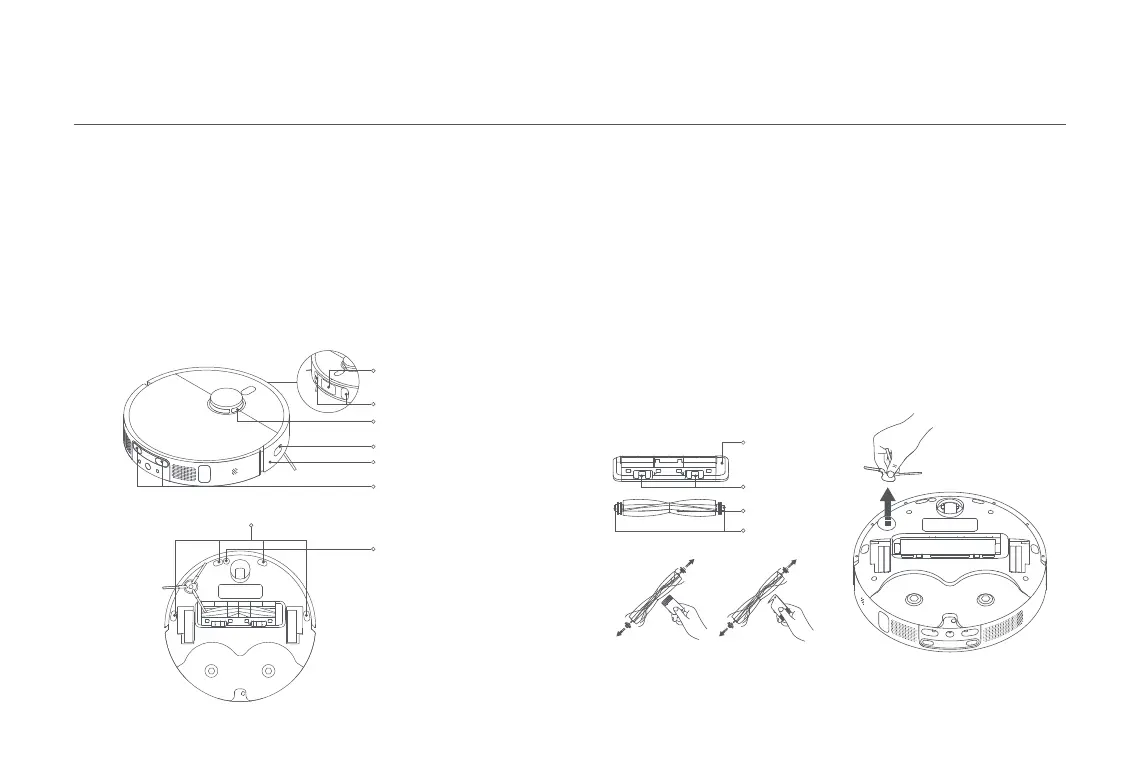 2. Levante a escova do aspirador robô e limpe os rolamentos da escova.