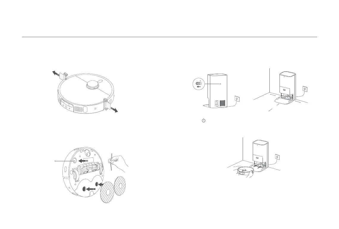Installera sidoborsten på klämman under robotdammsugaren och
