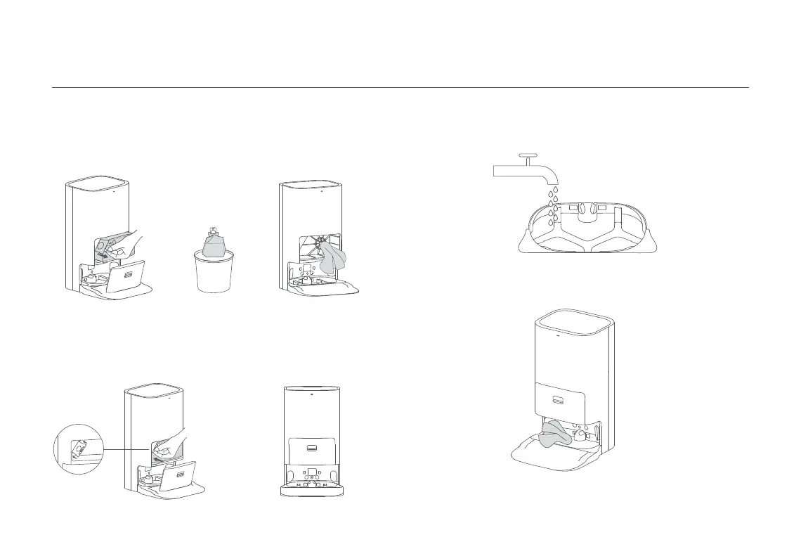 1. Retire la bandeja de limpieza, aclárela bien con agua y utilice un paño