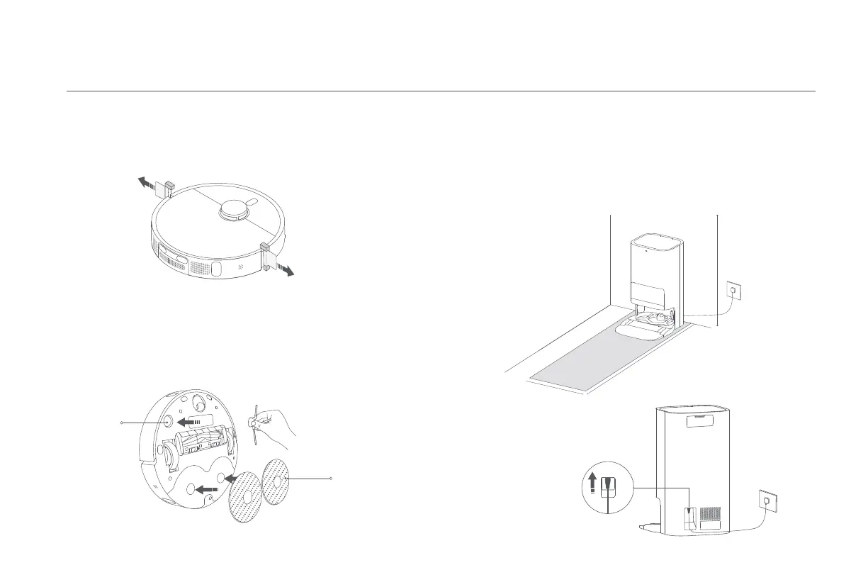Zamontuj szczotkę boczną i zespół mopa, jak pokazano na ilustracji. Montaż