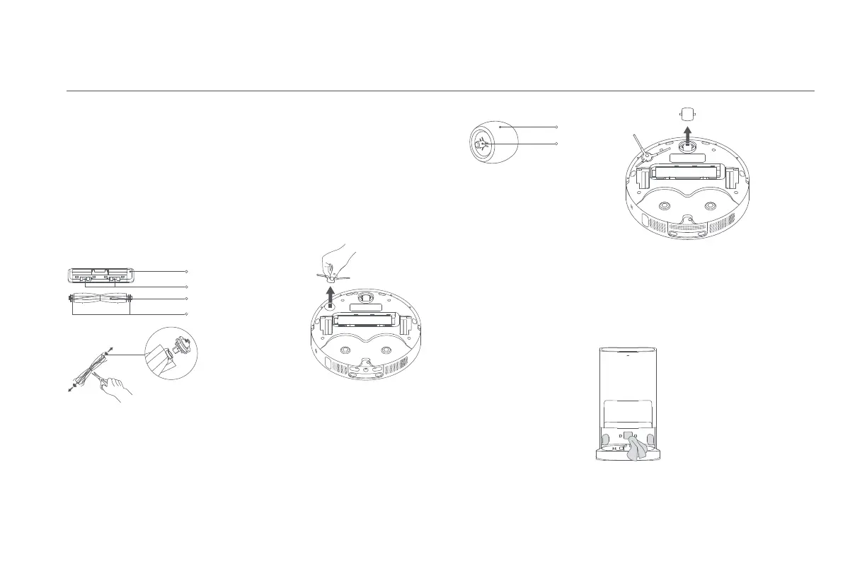 1. Balikkan robot vakum dan jepit klipnya untuk melepas penutup sikat.
