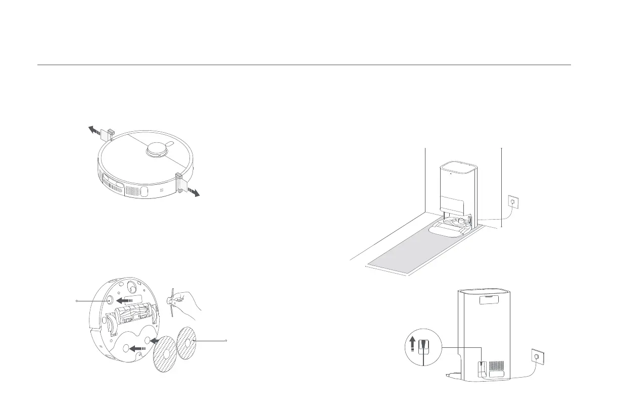 Avant d’utiliser le robot aspirateur, retirez les bandes de protection des deux côtés.