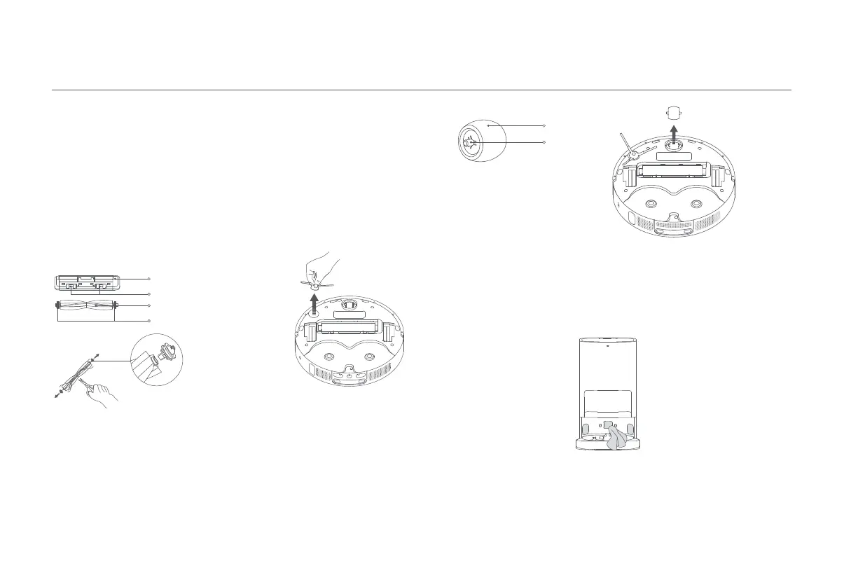 1. Переверните робот-пылесос и вытащите поворотное колесо.