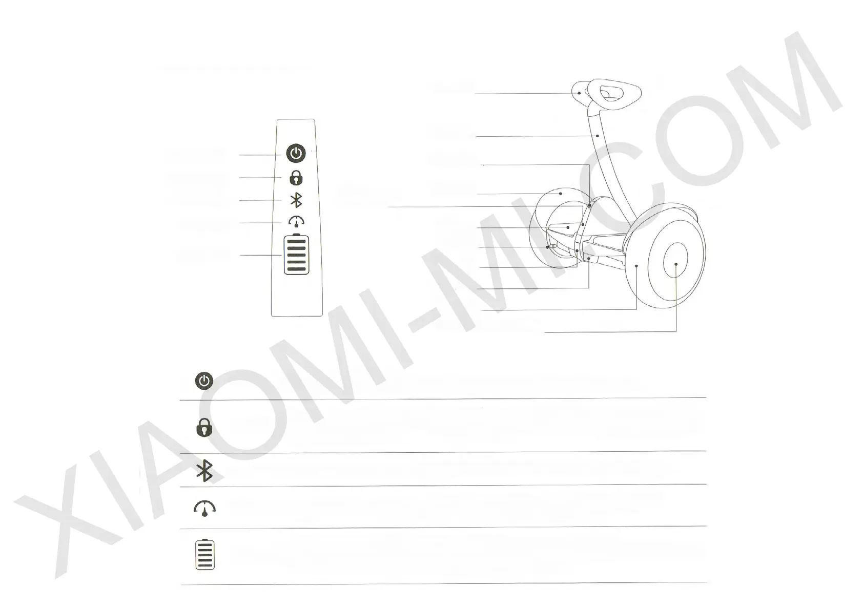 Turn on / off of Mini general power . After turning on segway, if it is not used for 10 minutes, or if the casing of the device is in