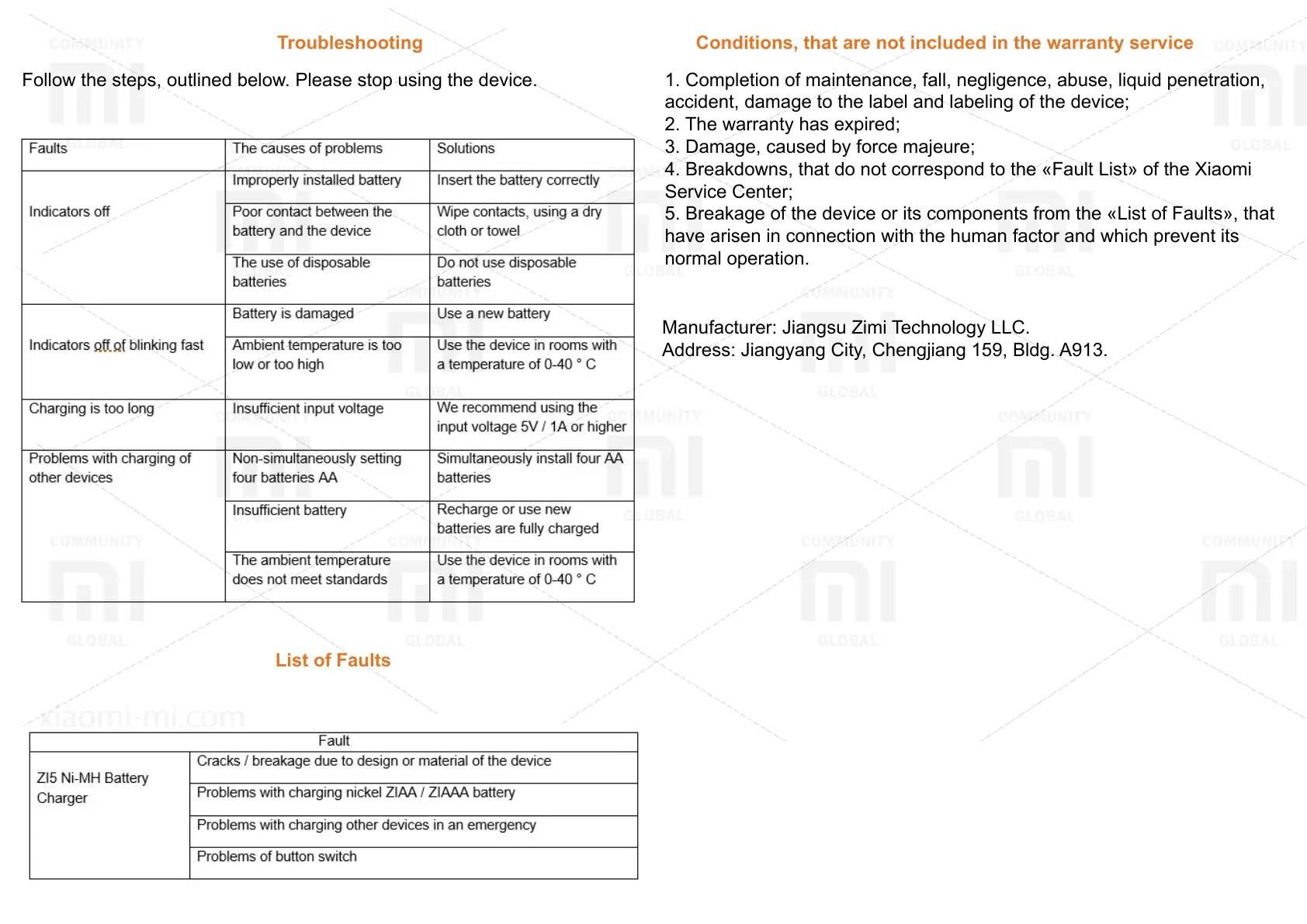 4. Breakdowns, that do not correspond to the «Fault List» of the Xiaomi