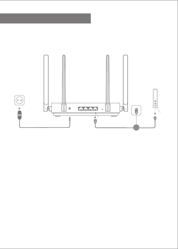 เปิดเราเตอร์ แล้วเชื่อมต่อพอร์ตอินเทอร์เน็ต (WAN) เข้ากับโมเด็ม DSL/
