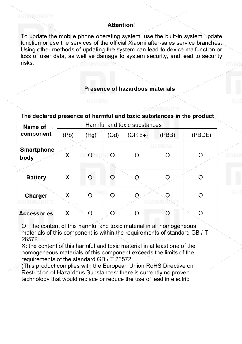 function or use the services of the official Xiaomi after-sales service branches.
