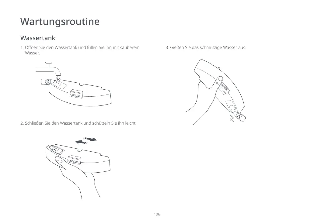 1. Önen Sie den Wassertank und füllen Sie ihn mit sauberem
