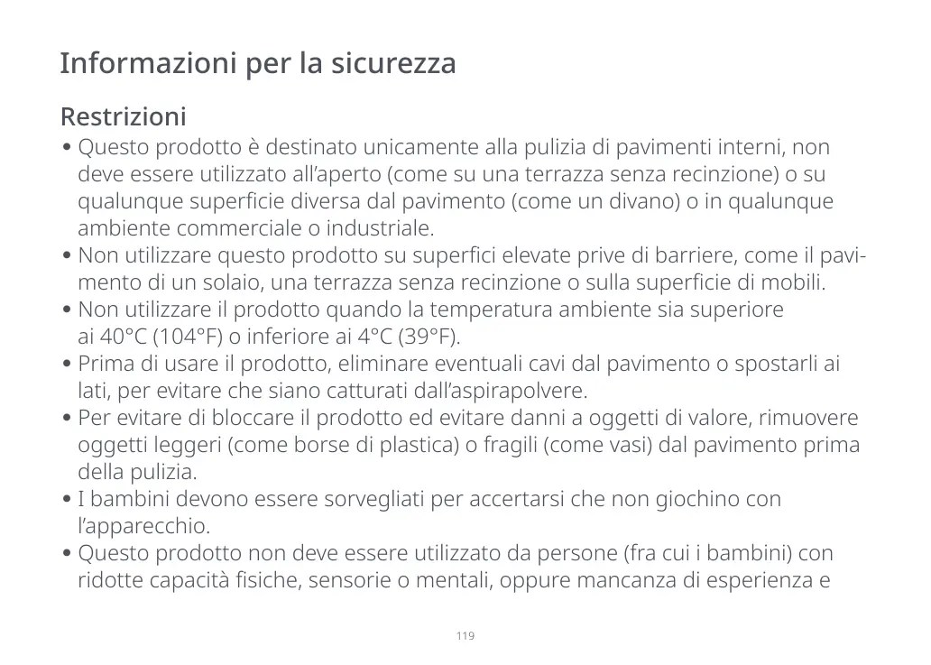 Questo prodotto è destinato unicamente alla pulizia di pavimenti interni, non