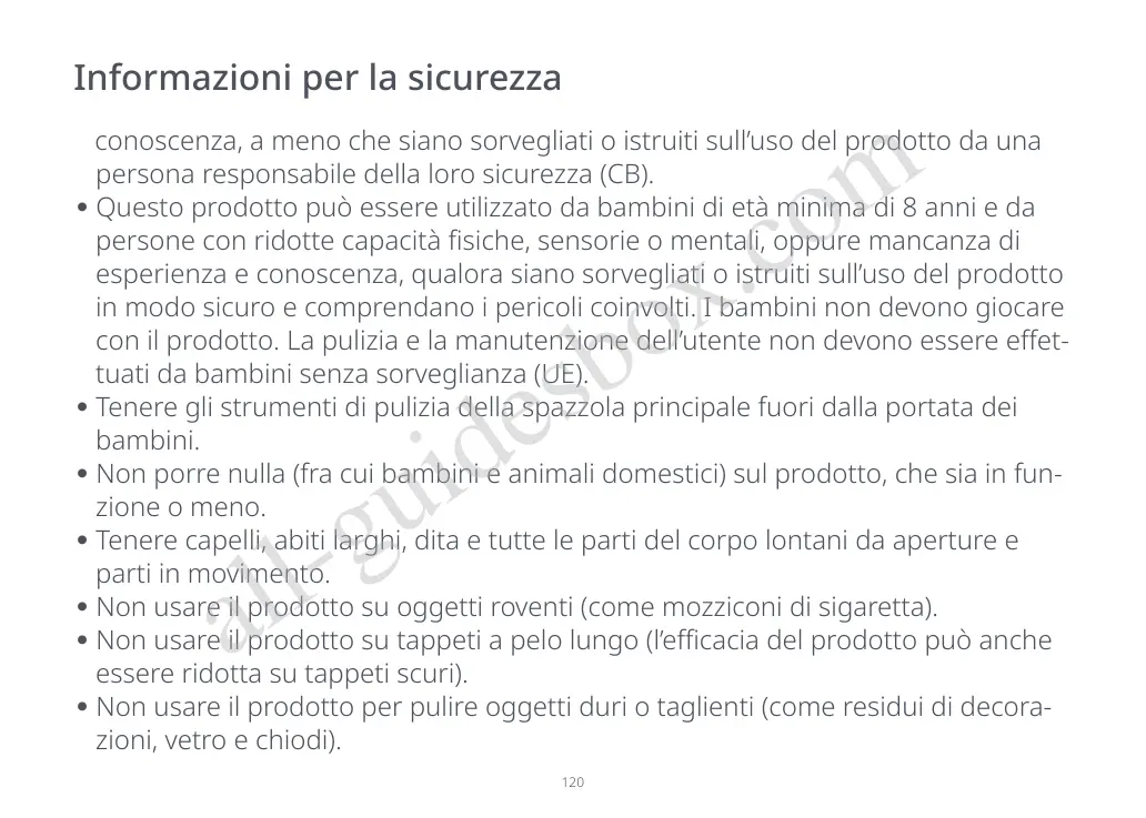 con il prodotto. La pulizia e la manutenzione dell’utente non devono essere eet-