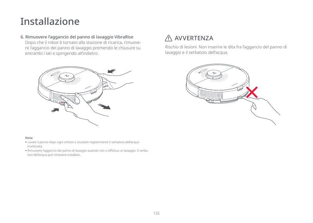 6. Rimuovere l’aggancio del panno di lavaggio VibraRise