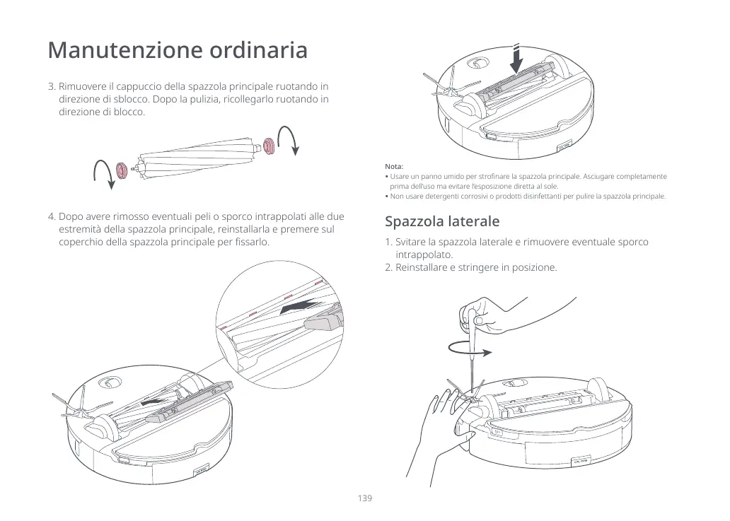 Non usare detergenti corrosivi o prodotti disinfettanti per pulire la spazzola principale.