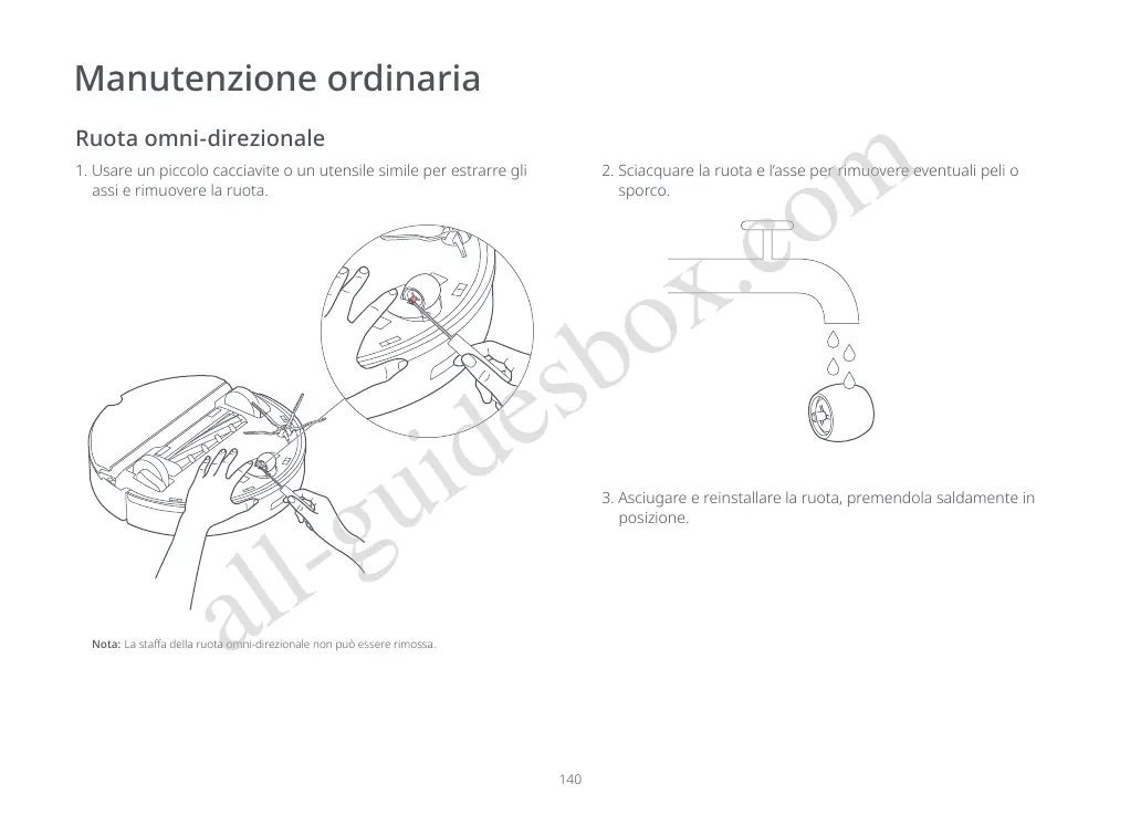 Nota: La staa della ruota omni-direzionale non può essere rimossa.