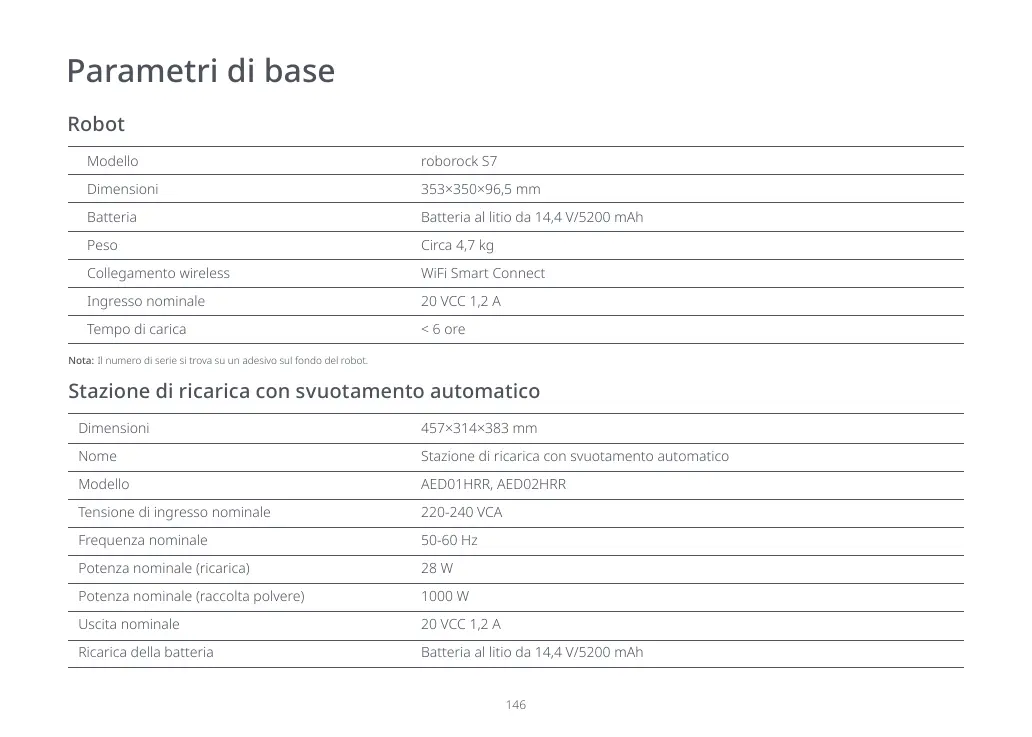 Nota: Il numero di serie si trova su un adesivo sul fondo del robot.