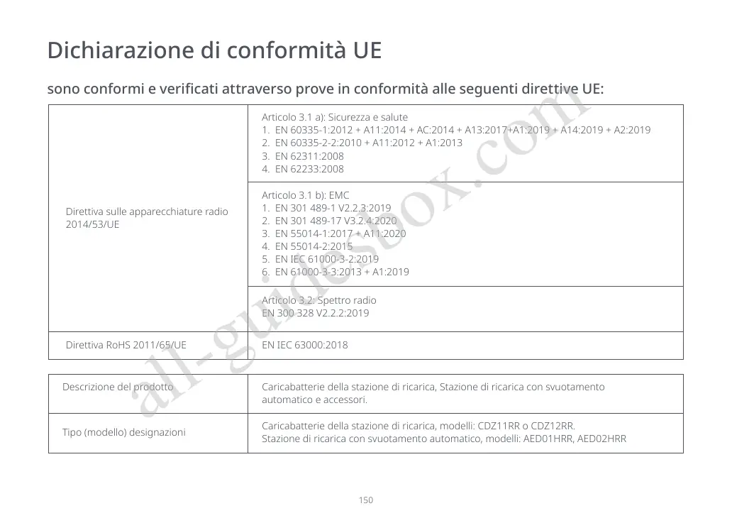 Stazione di ricarica con svuotamento automatico, modelli: AED01HRR, AED02HRR