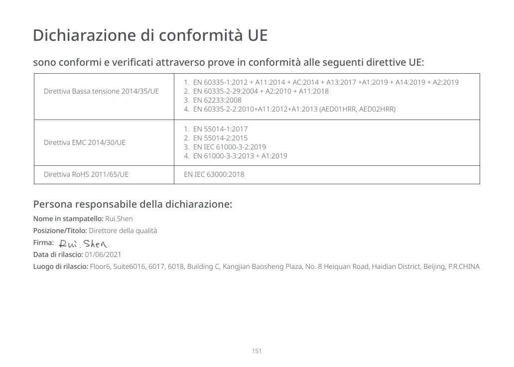 1. EN 60335-1:2012 + A11:2014 + AC:2014 + A13:2017 +A1:2019 + A14:2019 + A2:2019