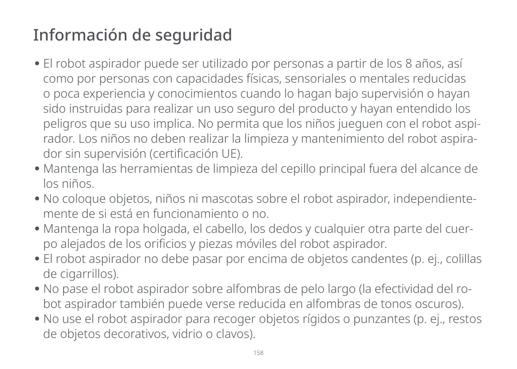 El robot aspirador puede ser utilizado por personas a partir de los 8 años, así