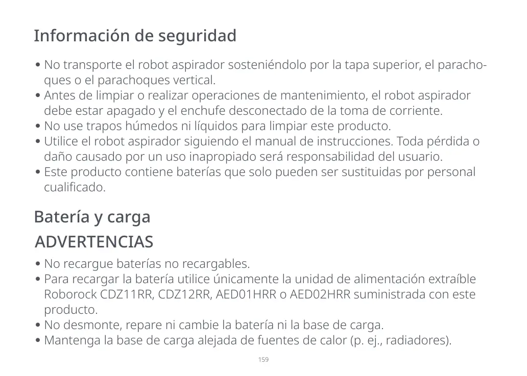 Utilice el robot aspirador siguiendo el manual de instrucciones. Toda pérdida o