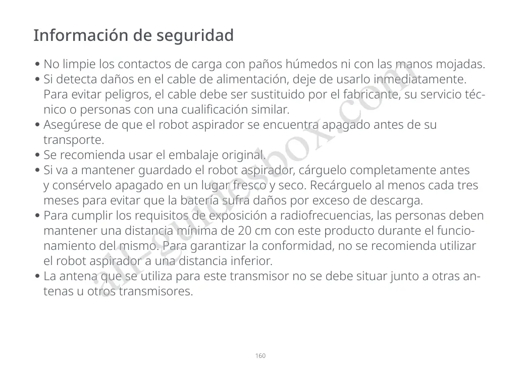 Si va a mantener guardado el robot aspirador, cárguelo completamente antes