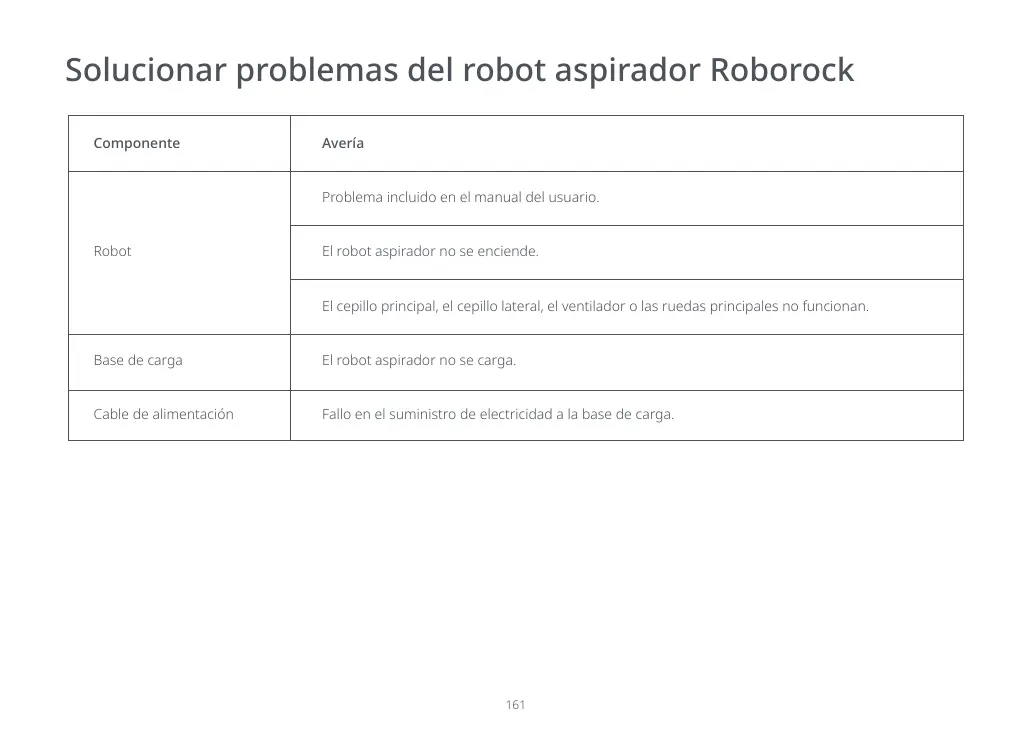 El cepillo principal, el cepillo lateral, el ventilador o las ruedas principales no funcionan.