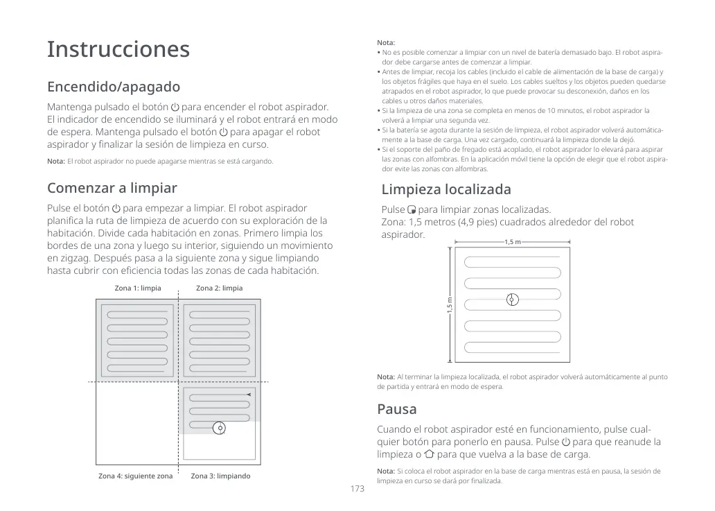 Nota: Al terminar la limpieza localizada, el robot aspirador volverá automáticamente al punto
